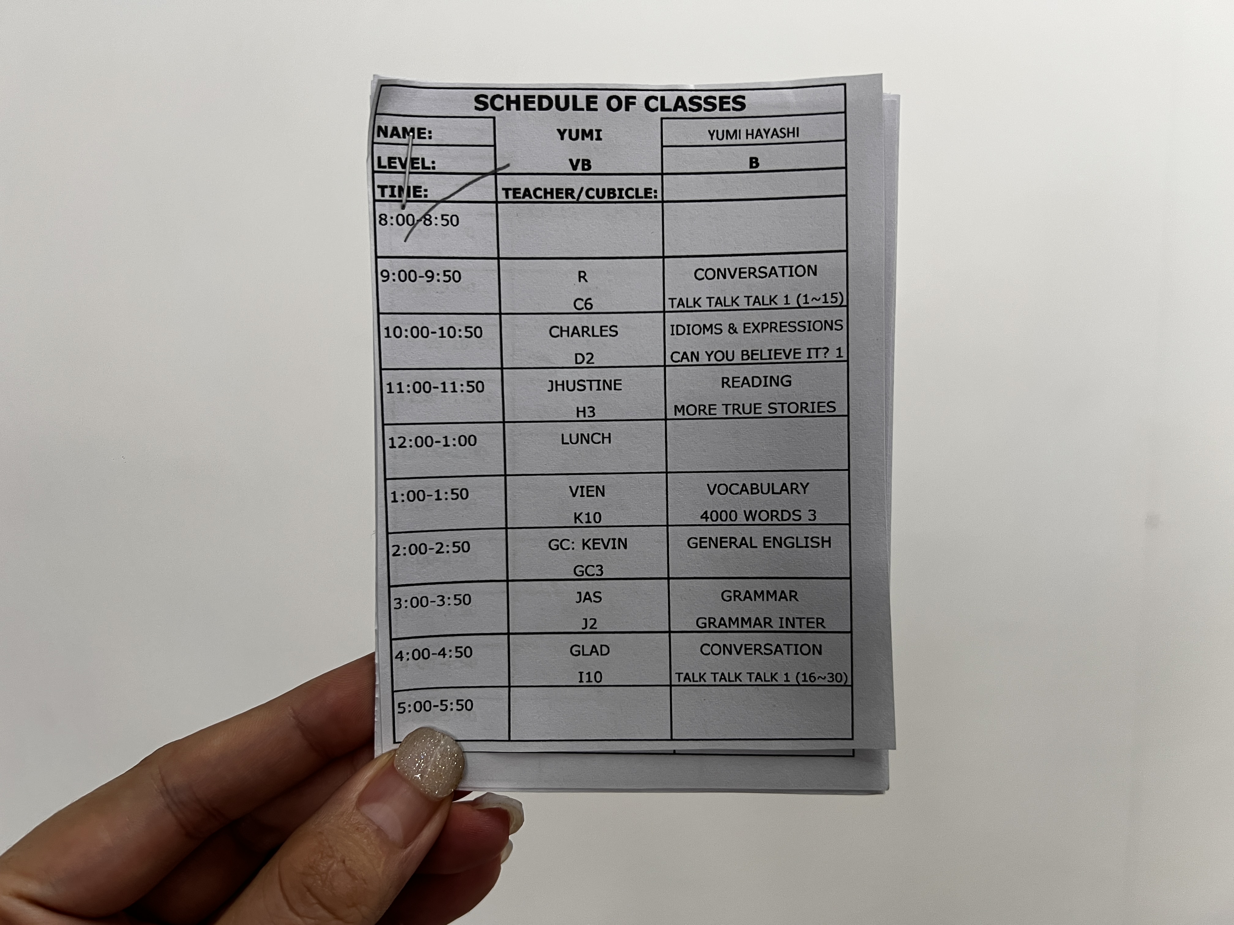 - 학원 스태프가 개별 시간표를 출력해 줍니다.