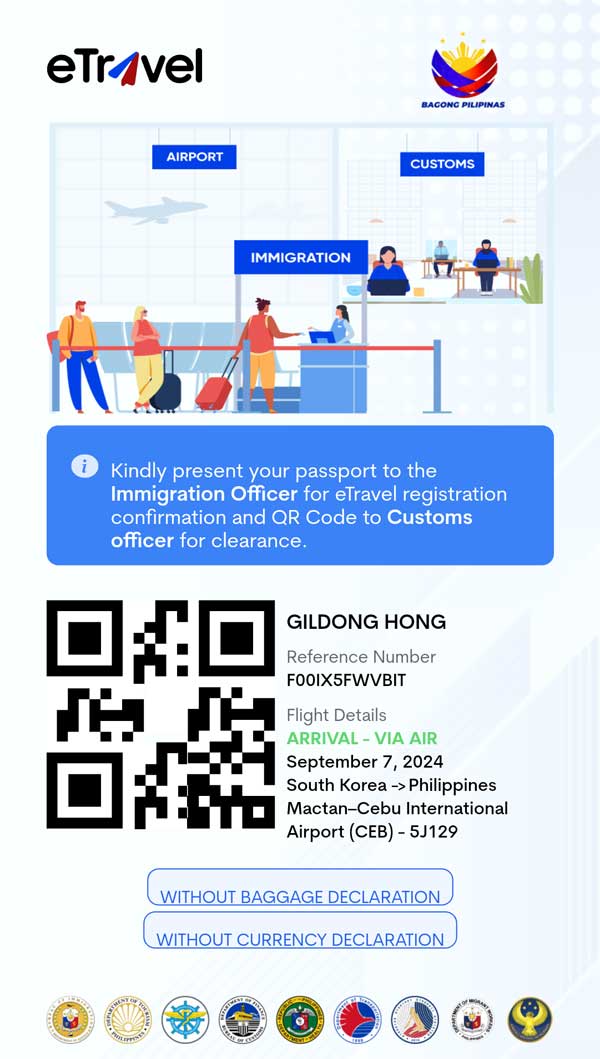이트래블은 단순히 형식적으로 작성하는 서류가 아니라, 현지 입국 시 불필요한 질문을 받지 않기 위해 보다 꼼꼼하게 작성해야 하는 절차입니다. 특히 필리핀은 세관 신고가 비교적 까다로운 편인데, 이트래블을 정확하게 작성해 두면 세관 통과 과정이 훨씬 수월해집니다. 반드시 내용을 확인한 후 작성하시길 권장드립니다.