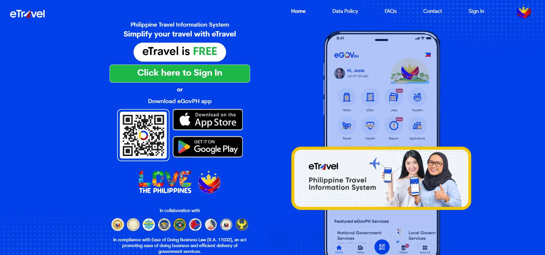 - e트래블 사이트(https://etravel.gov.ph)에 접속하여 'Click here to Sign In' 버튼 클릭